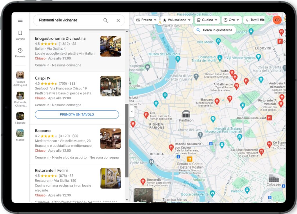 - Pianificare con Google Maps: Menù e Aree di Servizio Insieme