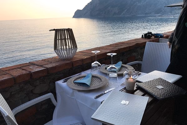 A Portofino, La Terrazza cattura il suo elemento distintivo nel nome stesso: una terrazza con una vista mozzafiato sul mare. Lo sguardo spazia dal verde degli alberi al blu profondo del mare e all'azzurro del cielo, posandosi anche sui colori dei fiori di glicine. L'arredamento è semplice, quasi rustico; con un tale spettacolo naturale, non serve sfarzo. L'unica distrazione è l'arrivo dei piatti, che si affidano ai sapori classici della tradizione italiana, realizzati con ingredienti freschi e genuini che rispettano la materia prima.