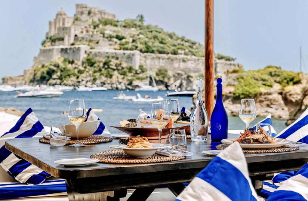 Ischia, essendo un'isola, offre numerose opportunità per gustare un ottimo pasto con una vista spettacolare sul mare. Alcuni locali fanno della loro posizione un punto di forza inseparabile dalla proposta gastronomica.